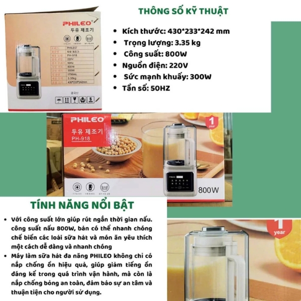 Máy làm sữa hạt Hàn Quốc Phileo PH-918 sản phẩm đa năng hiện đại và tiện ích với dung tích 1,75 lít mà gia đình nào cũng nên có trong bếp.