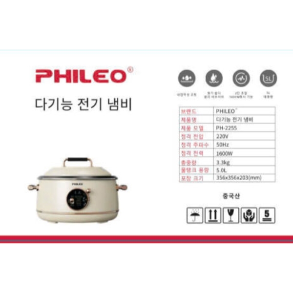 Nồi điện đa năng Philleo Hàn Quốc với sự kết hợp đa chức năng như Hầm, Chần, Luộc, Lẩu,.. và dung tích lớn đến 5L đáp ứng nhu cầu ăn đa dạng của cả gia đình, món đồ lỳ tưởng cho du lịch, dân văn phòng,…