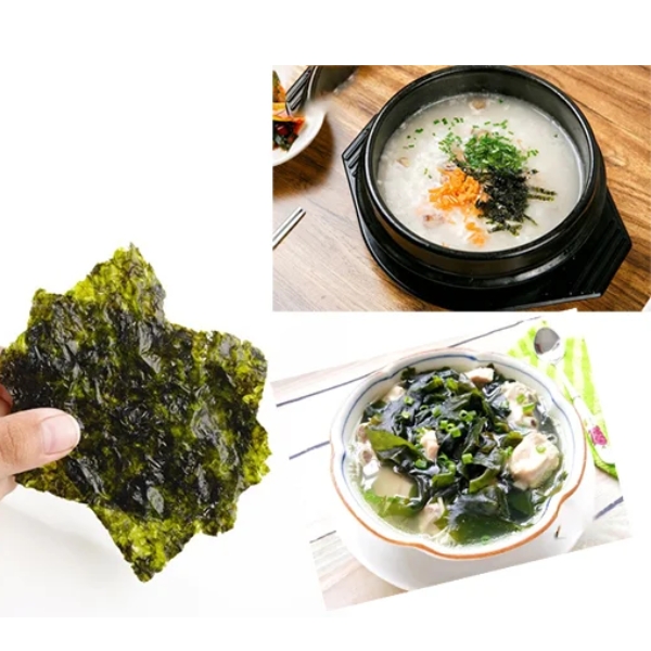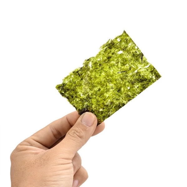 Từng lát rong biển được chế biến mỏng dẹt và khi bé nhai sẽ có cảm giác vừa giòn vừa ngậy rất ngon.