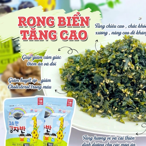 Rong biển ăn liền cho bé là món ăn vặt nổi tiếng đến từ Hàn Quốc mà bé nào cũng yêu thích. Không những vậy rong biển còn chứa rất nhiều dinh dưỡng như protein, khoáng chất và vitamin bổ ích cho sự phát triển của bé. Ngoài việc sử dụng cho bé ăn trực tiếp, ba mẹ còn có thể làm rất nhiều món ăn khác cho bé cùng rong biển như cơm cuộn, cơm nắm,... để bé được trải nghiệm những món ăn ngon mỗi ngày.